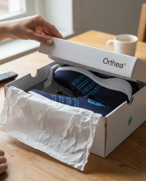 Orthea® combineert zachte ondersteuning met een comfortabel, meebewegend ontwerp, zodat je voeten minder belast worden, ook als je veel staat of loopt.
