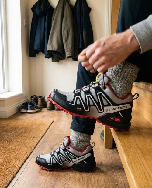 De meeste sneakers zijn gemaakt voor “gemiddelde” voeten en korte stukken. OrthoHike® is gebouwd voor comfort, stabiliteit en grip — juist als je voeten snel overbelast raken of gevoelig zijn.